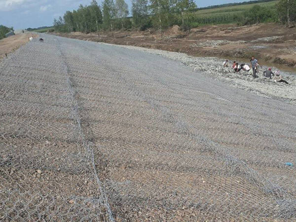 雷諾護(hù)墊也叫石籠護(hù)墊,格賓護(hù)墊,是指由機(jī)編雙絞合六邊形金屬網(wǎng)面構(gòu)成的厚度遠(yuǎn)小于長(zhǎng)度和寬度的墊形工程構(gòu)件。雷諾護(hù)墊中裝入塊石等填充料后連接成一體,成為主要用于水利堤防、岸坡等的防沖刷結(jié)構(gòu),具有柔性、對(duì)地基適應(yīng)性的優(yōu)點(diǎn)。